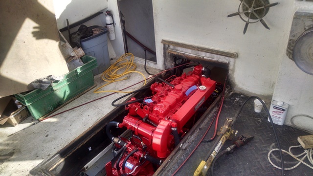 The engine was rebuilt by our Master Distributor in Marblehead, MA, Hansen Marine Engineering.  Hansen Marine, a long time Westerbeke Master Distributor, specializes in marine propulsion and fuel injection. As you can see, the rebuilt engine looks brand new!